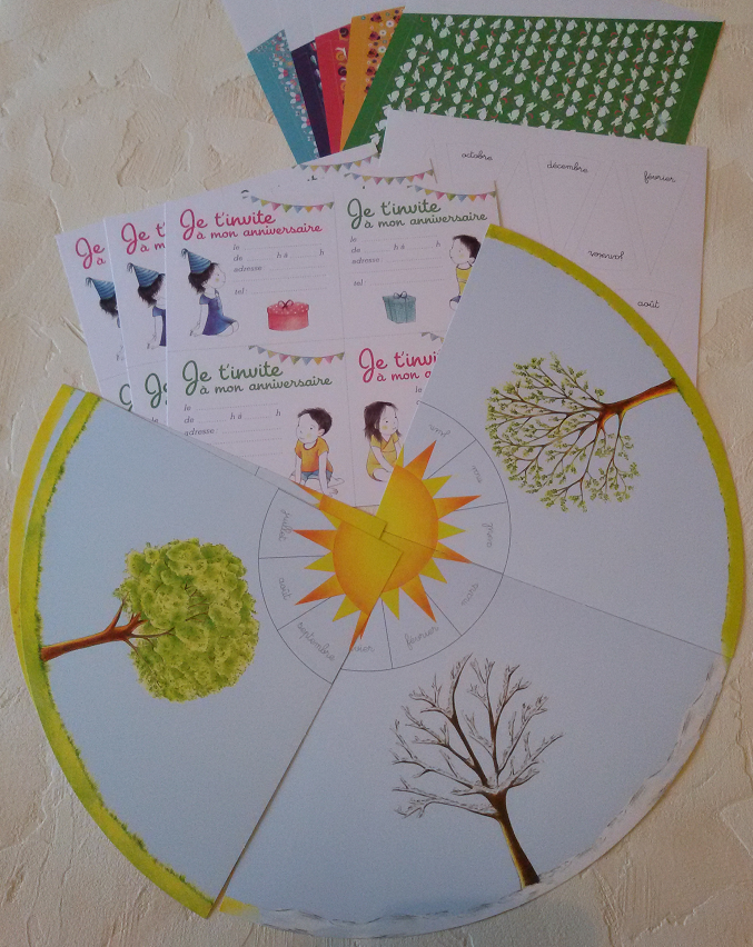 Cette pochette propose de quoi préparer la fête d'anniversaire, mais aussi des éléments pour prendre conscience du temps qui passe et du cycle des saisons.