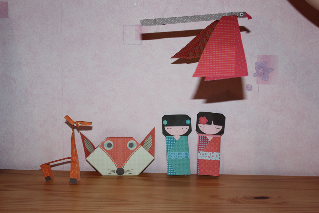 Je m'attendais à beaucoup de choses lorsque j'ai ouvert ce livre d'activités mais pas à prendre autant de plaisir à le faire avec mes enfants. Il y en a pour tous les goûts : coccinelle, poisson, maison, oiseau, poupée Kokeshi, marionnettes à doigts, crocodile, girafe, couronne d'étoiles... qu'ils soient filles ou garçons, les enfants vont aimer. Mes filles de 6 et 7 ans ont adoré et se sont empressées de faire ceux qui les intéressaient le plus, mais de toute façon tout le livre y est passé, les 28 activités ont été réalisées. Pour certaines, les plus faciles, elles ont pu les réalisées toutes seules. Par contre pour d'autres, il a fallu un tout petit peu d'aide de maman (par exemple pour réaliser des fentes dans une feuille). C'est simple, il n'y a qu'à découper, plier et coller suivant les instructions.