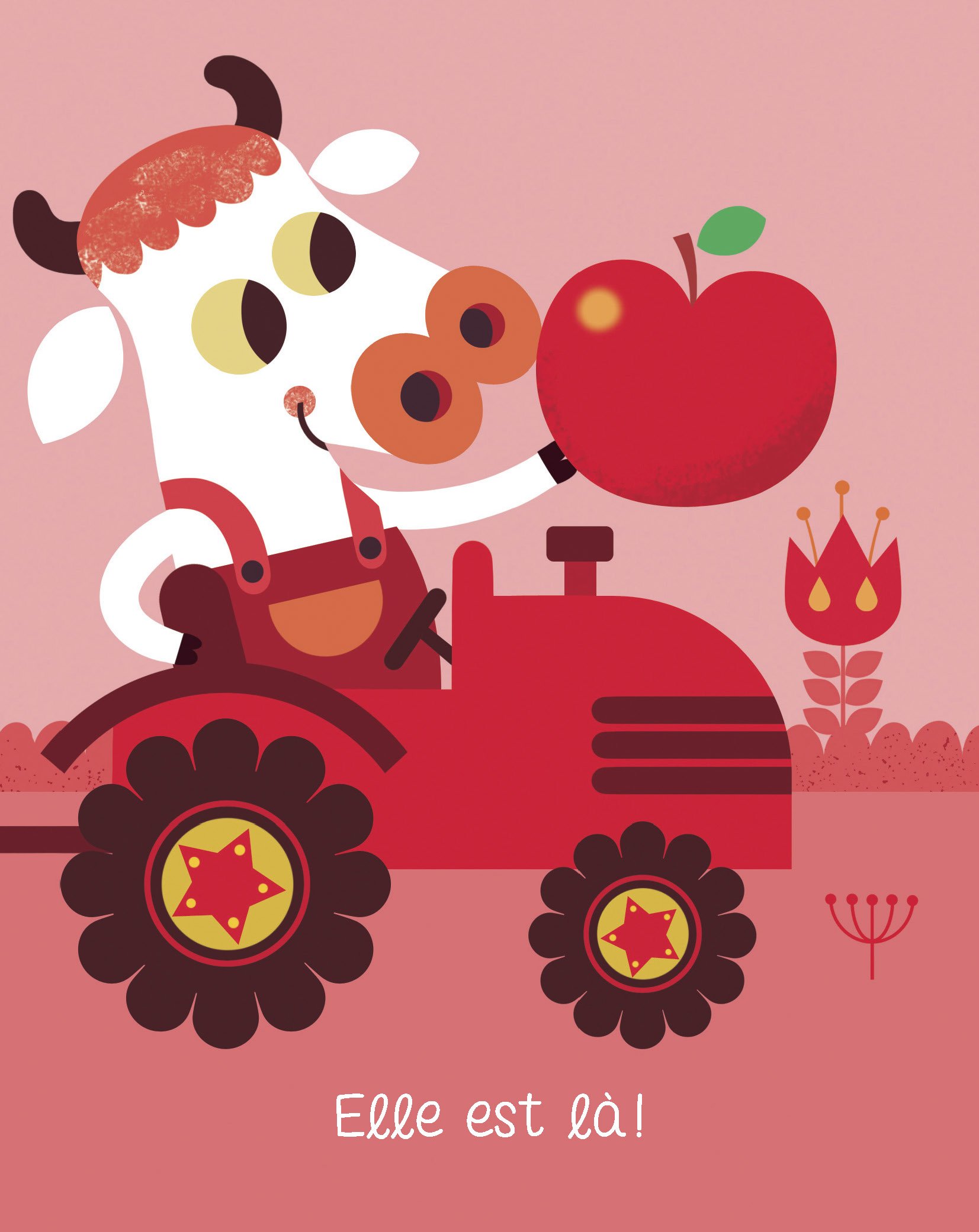 Rouge comme la pomme, le tracteur, le petit oiseau et le champignon, bleu comme la mer, la baleine, le bateau et le ciel, jaune comme le soleil, le canard, la fleur et le poussin, vert comme l'arbre, l'herbe, la salade et la souris, noir comme la nuit, le noir, le chapeau et le chat...