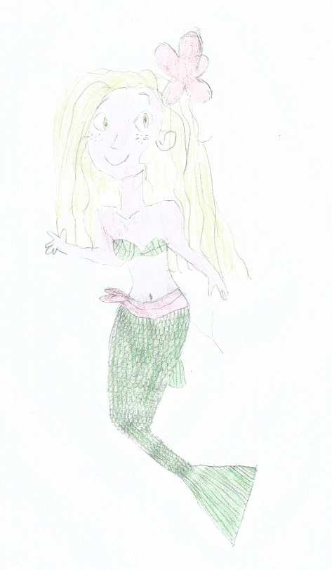 Et pour compléter ces jolis contes illustrés, l'enfant trouvera en fin d'ouvrage le conte dans sa version classique (tout en texte, avec quand même quelques petites illustrations). Mais aussi une petite activité pour apprendre à dessiner les personnages des contes : la petite poule rousse, le renard et la maman renard, ainsi que la petite sirène, son papa le roi, la sorcière des mers, et le prince. Ma fille de 9 ans s'y est essayée en dessinant le personnage de la petite sirène (cliquez sur l'image pour agrandir) :