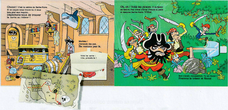 Au fil de l’album, l’enfant devra aider Gaël dans sa mission : se cacher sur le navire, se glisser discrètement dans la cabine du capitaine et lui voler la carte au trésor sans se faire repérer par le perroquet, puis trouver le trésor.