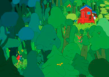 Alors à qui appartient la cabane ? Appartient-elle au randonneur ou à l'ours ? C'est ce que l'on se pose comme question une fois tournée la dernière page. En effet, l'ours semble observer le randonneur comme s'il lui avait pris sa place. On s'amuse d'ailleurs à le chercher sur chaque page, caché derrière un arbre, derrière un rocher ou tout simplement derrière la cabane.