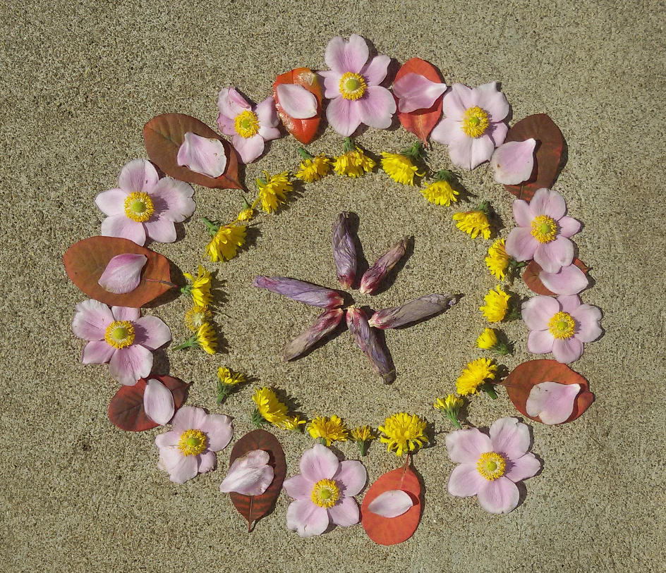 Nous avons fait un petit test avec ma fille de 5 ans. Pas de promenade en forêt car nous n'avions pas trop le temps, mais une petite cueillette dans le jardin qui compte de nombreux arbres et fleurs. Voici deux réalisations dont elle est très fière :
