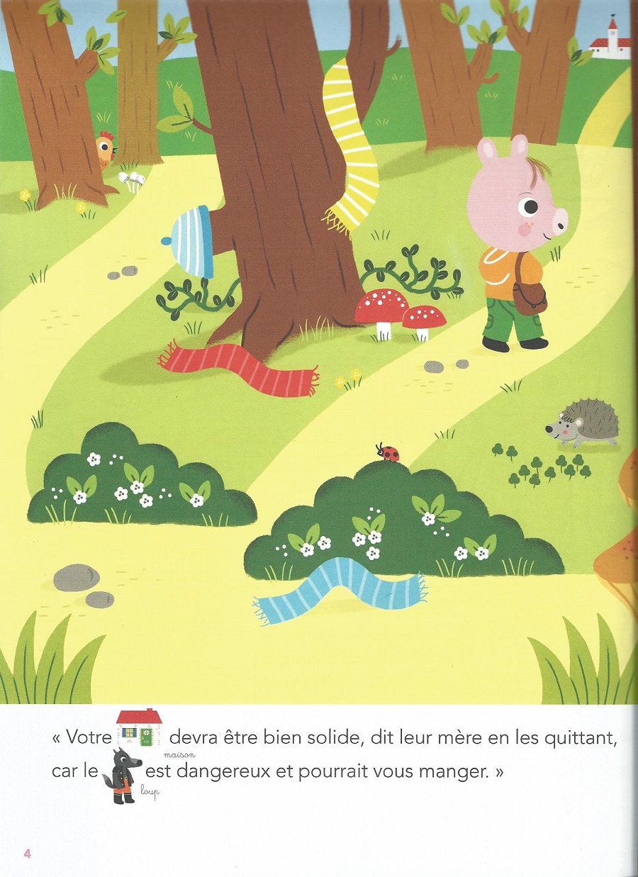 Sur chaque double page, l'enfant participe à la lecture car certains mots sont remplacés par des images. Cela permet à l'enfant de découvrir la notion de lecture à la manière d'un jeu.