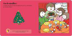 Sur chaque double page, un puzzle de 16 pièces qui met en scène Noël avec T'choupi : le sapin, le réveillon, les cadeaux.