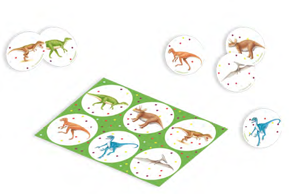 Un jeu de loto sur le thème des dinosaures, de 2 à 4 joueurs. Collection Mes premières découvertes Gallimard jeunesse, à partir de 3 ans.