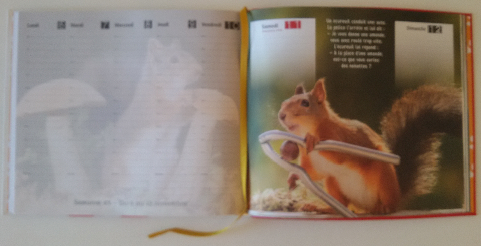 Les amoureux des animaux vont adorer ! Chaque double page est consacrée à une semaine. Le joli format de l'agenda (22,6 x 19,6cm) permet de noter les rendez-vous heure par heure du lundi au vendredi, sur la page de gauche. Pour les samedis et dimanches, un petit encadré est réservé sur la page de droite qui propose également une belle photo pleine page et une petite blague !