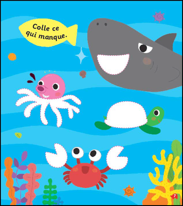 Les activités sont très diverses et nombreuses (il y trouvera aussi un labyrinthe ou encore des points à relier). Les illustrations sont mignonnes à croquer et les pages très colorées. Et les autocollants sont repositionnables pour pouvoir refaire les activités !