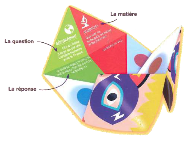 Vraiment très astucieux. Et très amusant ! Et certaines questions ne sont pas aisées, je pense notamment aux questions sur le temps (histoire) et l’espace (géographie). Les cocottes proposent également des devinettes et des gages pour s’amuser encore plus !