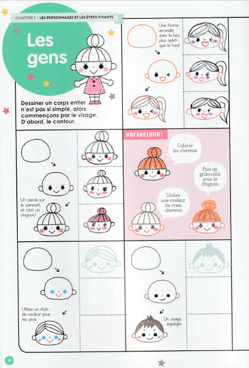 De plus, on n’est pas obligé de commencer avec « les gens », on peut très bien commencer avec « les animaux » ou « les fruits et légumes », car tout est réexpliqué à chaque fois étape par étape. Je trouve que la manière d’expliquer pour dessiner est vraiment facile à comprendre et très bien faite.