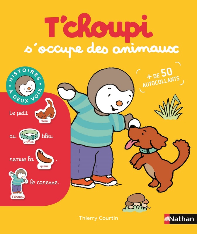 Une histoire à lire à deux voix dans laquelle l'enfant devra "lire" les mots illustrés dans les phrases et coller les autocollants correspondants. Collection T'choupi, dès 3 ans.