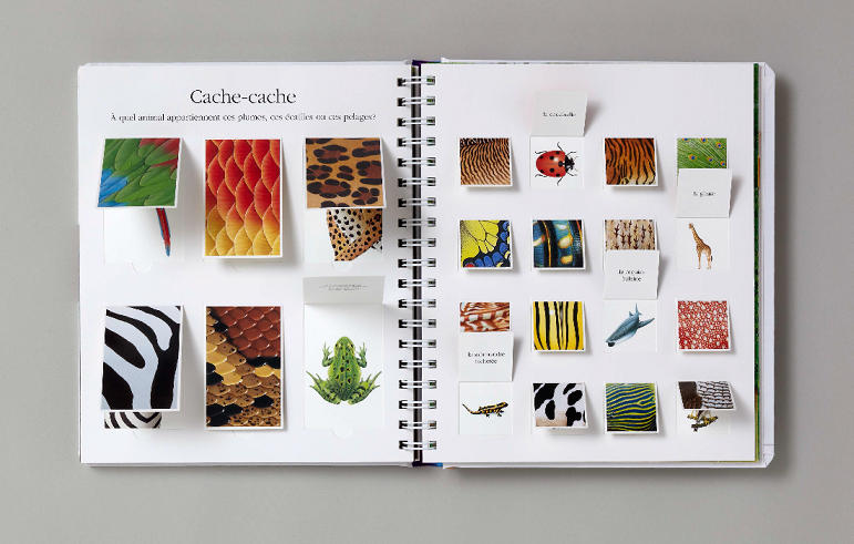 Voilà un livre qui m'a énormément surpris. Ils fourmille de rabats, de volets, de tirettes, de roues et de pages transparentes pour faire découvrir aux enfants les trésors de la nature. Et quand je dis enfants, je parle aussi bien des tout-petits qui ont 3 ans que des plus grands qui ont 6-7 ans. Car ce livre va de la plus simple des explications comme les saisons, le jour et la nuit, à du plus compliqué comme l'évolution d'une graine qui devient un arbre (autrement dit le cycle de la vie).