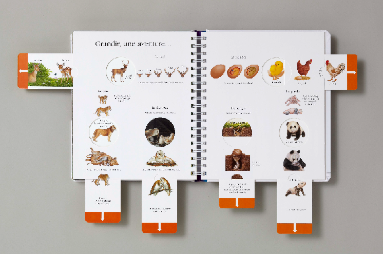 À chaque page, l'enfant va de surprise en surprise (et l'adulte qui l'accompagne dans sa lecture également). Il y a des animations dans tous les sens, et c'est un véritable plaisir que de découvrir ce qu'il y a sous terre, à quel arbre associe-t-on quel fruit, comment un œuf devient une poule...Et tout ça en apprenant les couleurs, les contraires, les noms des animaux, des arbres, des fleurs et des fruits !