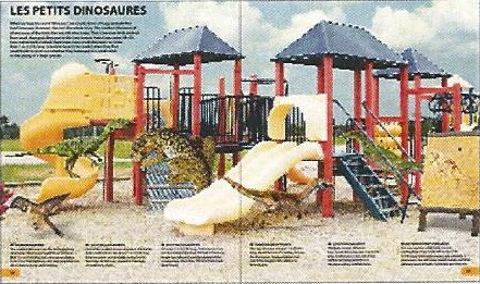 Une magnifique encyclopédie, qui mise autant sur le contenu textuel que sur les images surprenantes et innovantes. Voir des dinosaures dans un décor actuel comme ci-dessous dans un extrait du livre est très enrichissant car cela permet de se faire une véritable idée de la grandeur de ces dinosaures.