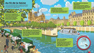 À travers plusieurs sujets (Au fil de la Seine, La tour Eiffel...), l'enfant découvre la ville de Paris.