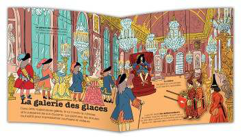 Chaque double page évoque un thème : les jardins, une journée type du roi, la galerie des glaces, le hameau de la reine... qui renferment chacun de nombreux détails et des petites anecdotes, dont certains détails sont dissimulés derrière des flaps, des roues ou des petits livrets.