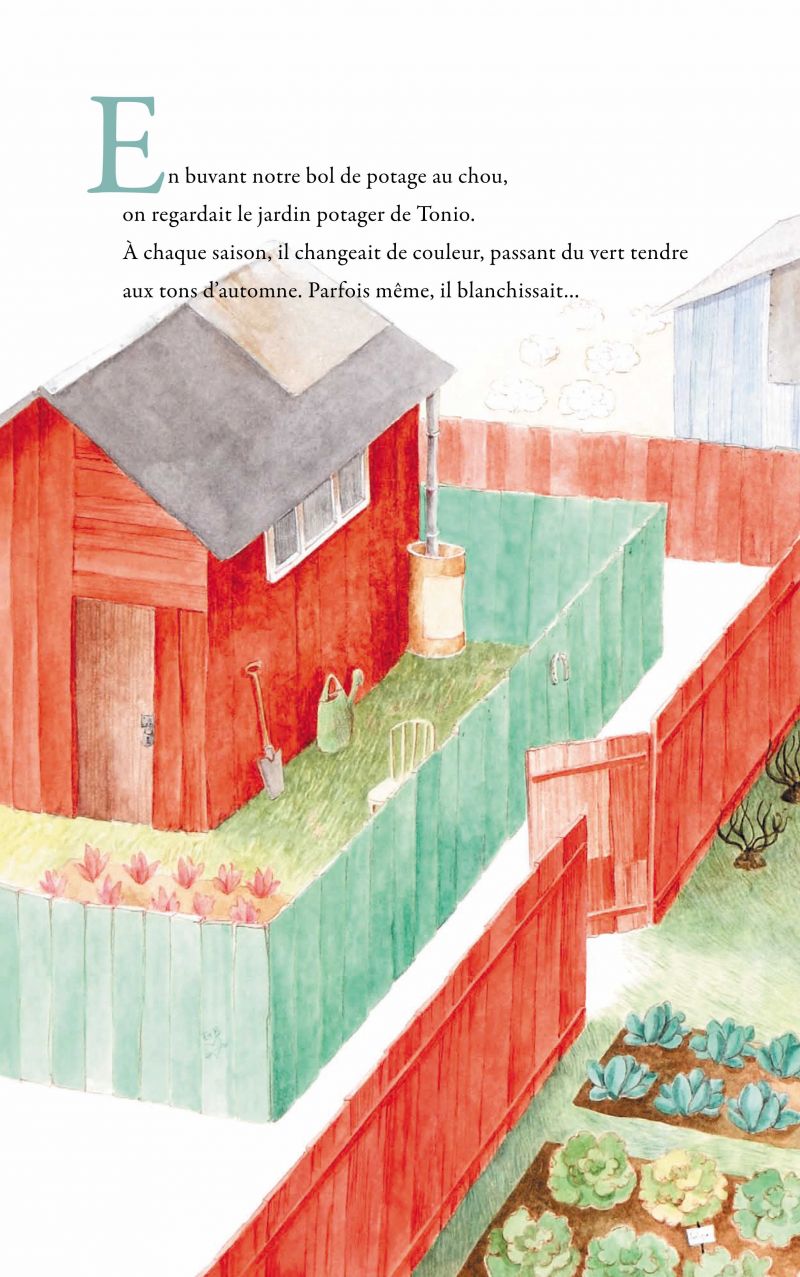 C'est avec beaucoup de poésie et de tendresse que ce conte nous évoque le temps des jardins ouvriers. Tonio possède son petit coin de paradis : son jardin. Il en fait profiter les enfants du quartier car il les aime bien, mais également parce que ce petit bout de jardin est le dernier de leur cité de la banlieue parisienne. Ces moments sont privilégiés autant pour Tonio que pour ceux qu'il appelle "ses gamins". Mais un jour, les enfants trouvent la porte du jardin close. Et c'est en se rendant chez Tonio qu'ils apprennent que le jardin de Tonio va être détruit, pour y construire un supermarché...