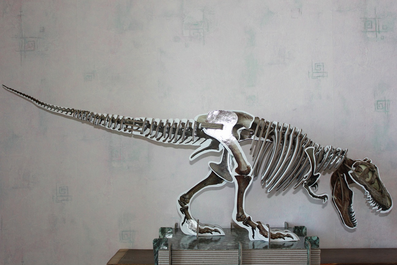 Ce coffret permet de monter la maquette du squelette d'un Tyrannosaure de pas moins d'un mètre de long et de 30 cm de haut. Avec 11 planches prédécoupées de 80 pièces et un livret d'instructions de montage, l'enfant (accompagné si possible d'un adulte car certaines pièces ne sont pas faciles à emboîter entre elles), va pouvoir réaliser une maquette solide et surprenante de ce fameux dinosaure.